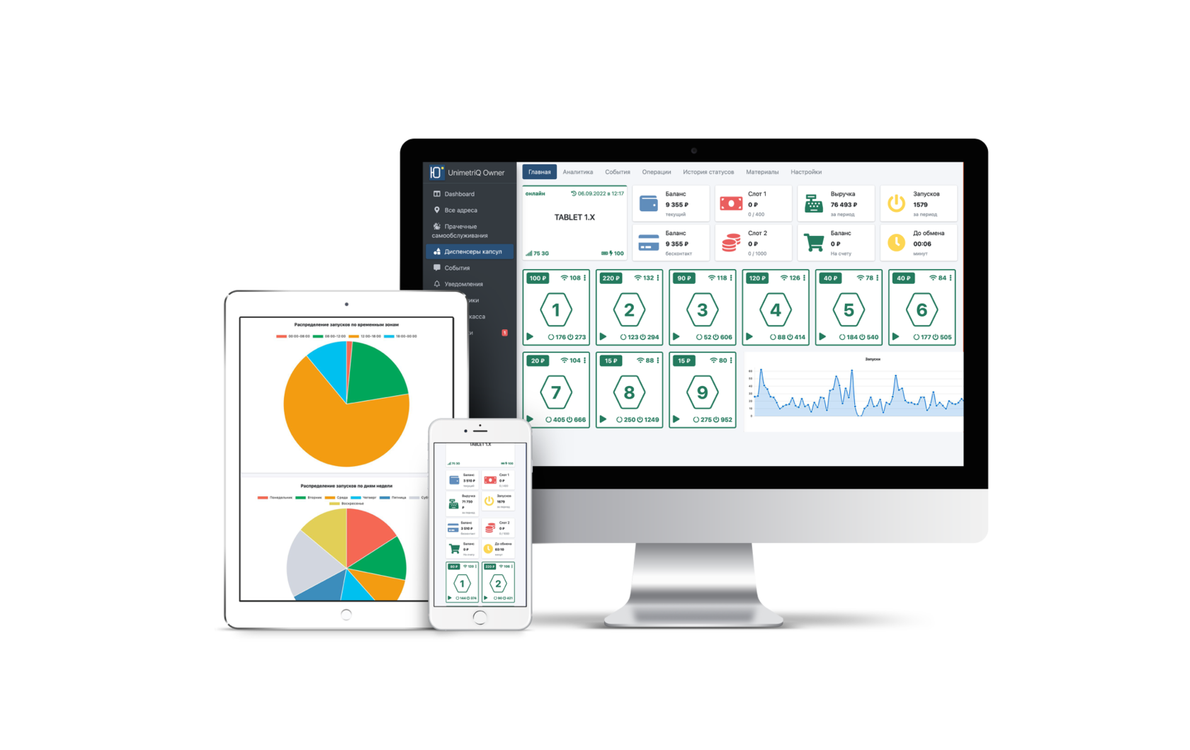 Свыше 100 собственных точек Прачечных самообслуживания - более 500 единиц оборудования. 2000 партнёров по России и СНГ. Сеть мобильных копицентров самообслуживания и собственная IT-платформа UnimetriQ для управления вендинговым бизнесом.